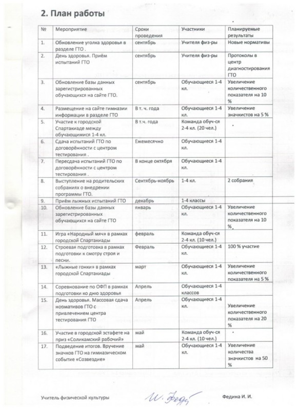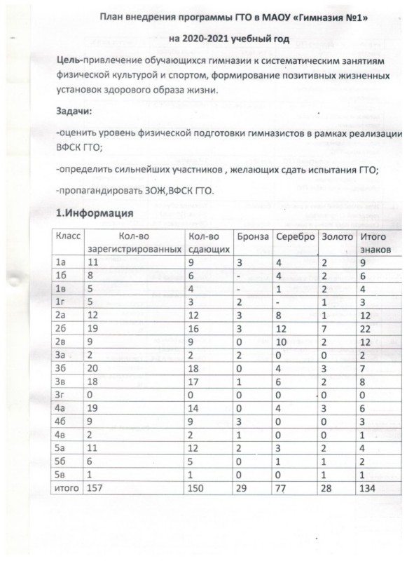 План работы по реализации и внедрению программы ГТО в МАОУ "Гимназия № 1" на 2019 год
