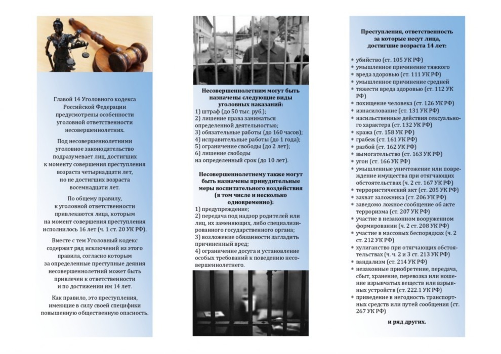 Неосведомленность подростков о системе наказания лиц, не достигших возраста 18 лет, является одним из главных факторов, способствующих совершению преступления несовершеннолетними.